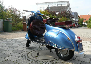 VL2T and a 1960 Vespa VBB restored as an MP6 replica. They are